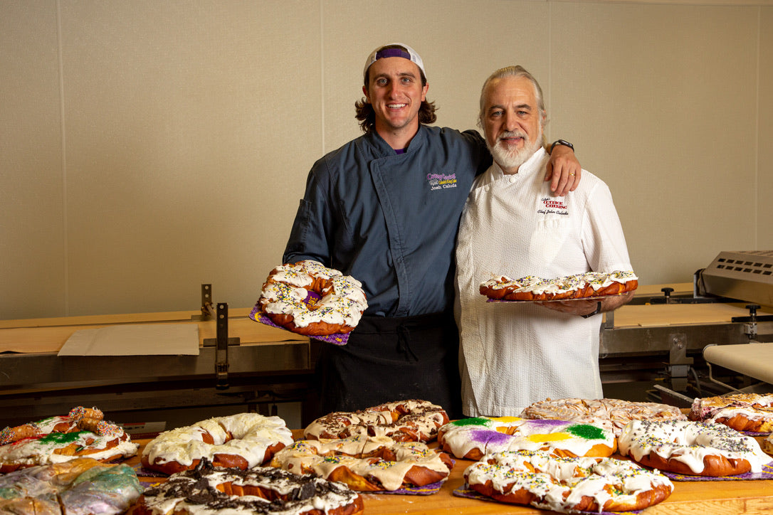 Caluda’s King Cake has been proudly serving fresh king cakes to the New Orleans Metro Area for more than 35 years. Owned by father-son duo John and Josh Caluda, we offer a variety of both traditional and non-traditional flavors out of our 10,000 sq ft. state-of-the-art bakery in Harahan, LA. With more than three decades in the industry, we know king cakes and are proud to be a NOLA tradition. Offering our customers moist, delicious king cakes and excellent service, Caluda’s is the go-to king cake bakery not only during the festival season, but year-round.