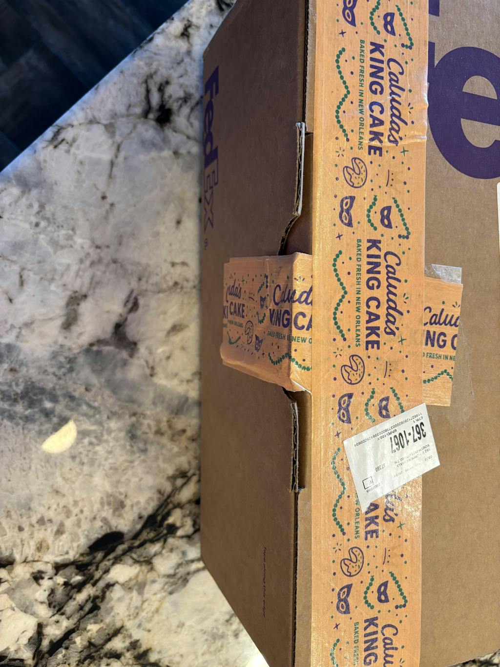 - 1 Freshly baked un-iced Praline King Cake