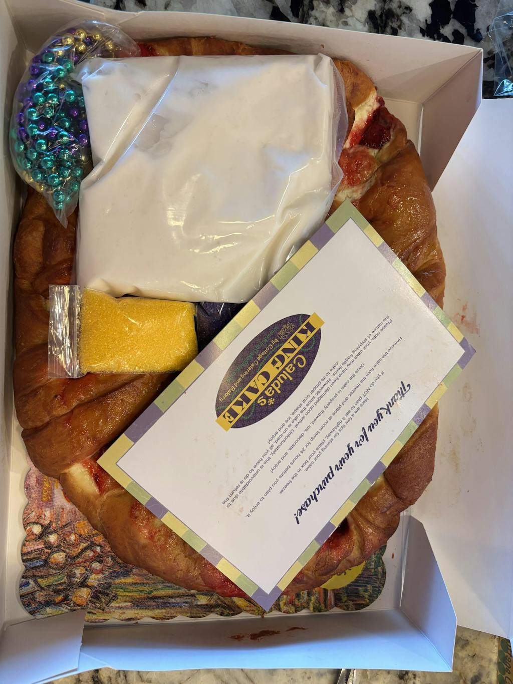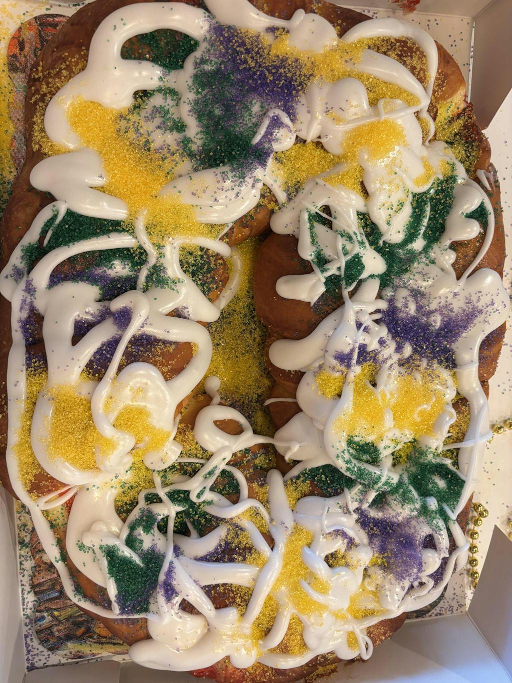 - 1 Freshly baked un-iced Cream Cheese King Cake